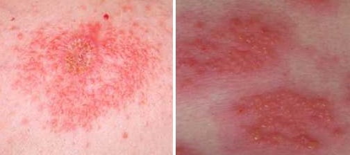 - последующим замещением пятен пузырьками, наполненными жидкостью;