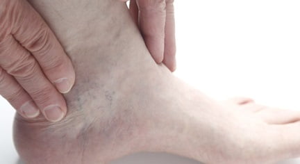 - Наличие отёков, которые видны при надавливании в области голеностопного сустава;