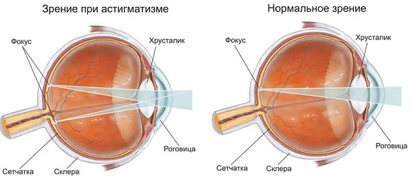 Суть заболевания — это резкое нарушение силы преломления оптической функции в меридианах: горизонтальном (слабом) и вертикальном (сильном). Они располагаются перпендикулярно по отношению друг к другу. При заболевании наблюдается фокус света в разных точках, который не попадает на сетчатку глаза. На основании этого специалист устанавливает неутешительный диагноз.