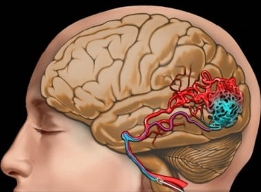 - Снижение притока артериальной крови, нарушение кровообращения или омертвение (инсульт) головного мозга.