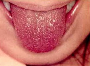 - Изменения на губах или в полости рта: «клубничный» язык, эритема или трещины на губах, инфицирование слизистой полости рта и глотки;