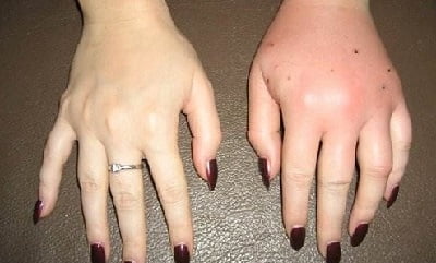 Если была укушена рука ниже локтя, увеличиваются одна или несколько групп лимфоузлов: локтевые, подмышечные, шейные. Порядок появления лимфаденита может быть именно такой, но могут увеличиваться сразу подмышечные узлы, а локтевые остаются неизменными. Так же, начиная с подмышечной ямки, будут увеличиваться лимфоузлы при повреждении когтями или зубами предплечья или плеча.