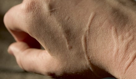 - Через 2-3 суток наступает период разгара болезни: такие узелки нагнаиваются и сами вскрываются, после чего покрываются корочкой и могут начать слабо чесаться (особенно если был поцарапан ребенок — аллергик). В течение 1-3 недель корочки сохнут и отпадают, после чего место укуса перестает быть заметным: здесь не остается ни рубцов, ни более темного участка кожи. Это означает, что Бартонелла размножилась в достаточном количестве, поборола местный иммунитет участка кожи и попала в лимфатическое русло.