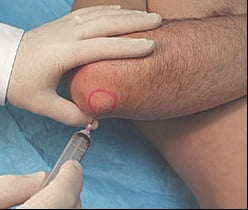 При гнойном бурсите этого делать не стоит: гной под давлением может попасть в окружающие ткани и кровеносные сосуды.
