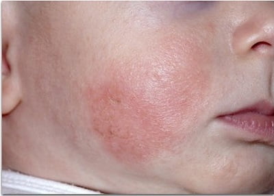 - Покраснение (эритема). Эритема — повышенное кровенаполнение дермальных капилляров. При острой форме наблюдают покраснение с нечеткими краями и припухлостью. Для хронического течения дерматита эритема не обязательна. При надавливании участок гиперемированной кожи на некоторое время бледнеет. Эритему не следует путать с геморрагией (кровоизлиянием под кожу). Геморрагия рассматривается, как отдельное проявление при кожных патологиях — геморрагический диатез;