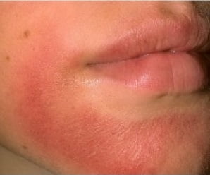 - кожа покрывается большими пятнами красного цвета;