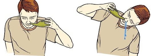 Для этого можно использовать 20,0 мл шприц, спринцовку, чайник и другие емкости. Перед процедурой необходимо закапать нос Фармазолином, Нафтизином или другими сосудосуживающими каплями.