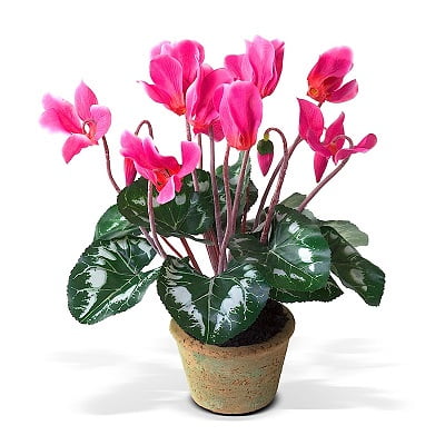 - Эффективным средством от головных болей, нередко сопровождающих воспаление гайморовых пазух, является сок корня цикламена. В обе ноздри пациенту закапывают по 2 капли сока, при этом больной находится в положении лежа. Спустя пять минут у пациента появляется реакция в виде чихания, кашля и жара. После этой процедуры в течение целых суток из носа у пациента выделяется гной. Происходит ослабление головных болей, нормализуется режим сна. Существует и аптечный препарат на основе сока цикламенового корня — Синуфорте.