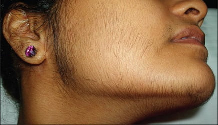 Гирсутизм — это излишнее оволосение у женщин по мужскому типу, при котором в зону поражения входят как конечности и туловище, так и лицо (подбородок, шея, щеки, носогубная складка).