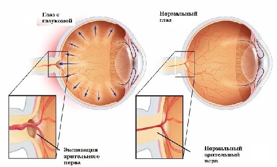 Как было сказано ранее, глаукома характеризуется повышением внутриглазного давления (ВГД), которое в норме составляет 9 — 20 миллиметров ртутного столба. Причиной повышения ВГД является нарушение циркуляции внутриглазной жидкости.