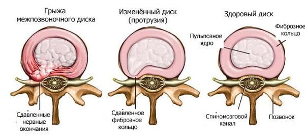 - Протрузии — небольшое выдавливание наружного кольца диска при полной сохранности плотной наружной стенки. Это начальный, обратимый этап грыжеобразования;
