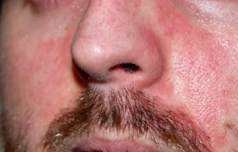 При развитии аллергии на алкоголь симптомы (см. фото) на начальных этапах развития заболевания выражены достаточно слабо и обычно проявляются только красными пятнами на кожных покровах. Затем, по прошествии некоторого времени, начинают проявляться различные нарушения метаболизма — развиваются сильные головные боли, появляются запоры, обостряются хронические заболевания кишечника, появляется гастрит. В некоторых случаях могут наблюдаться панические атаки и обмороки.
