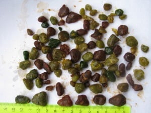 Каловые камни ( см. фото) могут быть как единичными образованиями, так и иметь множественную структуру. Форма их может быть как овальной, так и круглой, диаметр достигать 15-20 см.
