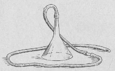 Вода вливается по 1 — 2 литра, понадобится ковш соответствующих размеров. Стеклянная кружка требуется не меньшего объёма. Больной принимает нужную позу (к примеру, на правом боку с поджатыми коленями), врач вводит смазанный вазелином наконечник на достаточную глубину. В литературе приводится значение 30-40 см, требуется учитывать анатомические особенности человека по очевидным причинам.