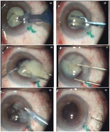 - Экстракапсулярная экстракция хрусталика — в ходе операции удаляется наружная часть капсулы и все вещество хрусталика, но оставляется задняя часть капсулы, что позволяет сохранить барьер между стекловидным телом и роговицей. После удаления хрусталика вместо него вставляется и фиксируется протез — интраокулярная линза. Данная операция выполняется относительно редко, поскольку является травматичной из-за большого разреза на роговице и наложения швов. В настоящее время экстракапсулярная экстракция хрусталика заменяется менее травматичной факоэмульсификацией.