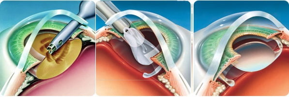 Такое лечение позволяет полностью избавить человека от катаракты, поскольку в ходе операции производится удаление помутневших масс хрусталика. Но после операции по удалению катаракты человек не сможет видеть, т.к. хрусталик окажется попросту разрушенным, поэтому обязательной второй частью хирургического вмешательства является установка протеза, который позволит видеть.