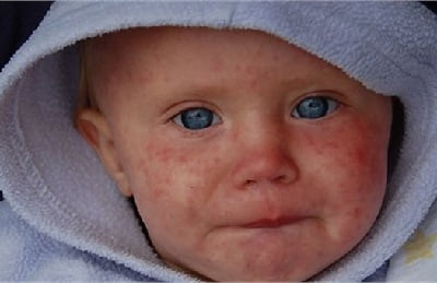 Вирус кори в процессе своей жизнедеятельности вырабатывает токсические вещества, отравляющие организм детей. Симптомом кори является характерная красная сыпь на лице и теле.