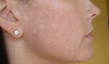 - В центре пятна кожа начинает шелушиться, чешуйки имеют беловатый цвет