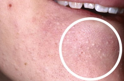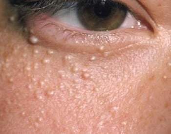 Милиумы представляют собой находящиеся внутри кожного покрова плотные образования в виде узелков, имеющие белый или светло-желтый цвет и четкие границы. Размер данных образований варьируется в пределах от половины до трех миллиметров. Они немного возвышаются над поверхностью кожи, что делает их довольно заметными, особенно у обладателей смуглой кожи.