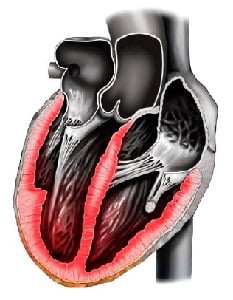 - Острая. Характерным проявлением такой формы рассматриваемого воспалительного процесса будет сердечная недостаточность на фоне активного пограничного миокардита. Больному должна оказываться квалифицированная медицинская помощь, но даже в этом случае полного восстановления тканей не произойдет.