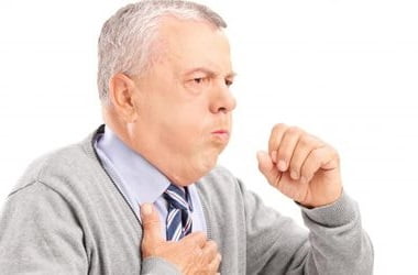 - Кашель — на ранних стадиях сухой, без мокроты, «свистящий», в основном по утрам, а также ночью, когда человек находится в горизонтальном положении. Симптом усиливается в холодное время года. Со временем при откашливании появляется мокрота, сгустки, у пожилых людей возможны следы крови в отделяемом секрете;