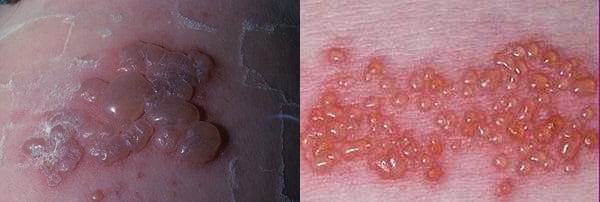 - Геморрагическая — это форма характеризуется пузырьковыми высыпаниями наполненными кровью. На пораженном участке эпидермиса снижается чувствительность, возникает онемение и покалывание, кожа сильно зудит;