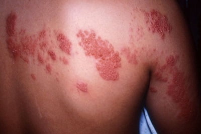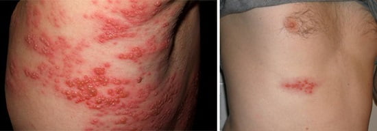 Высыпания при опоясывающем лишае: