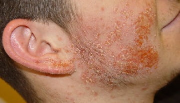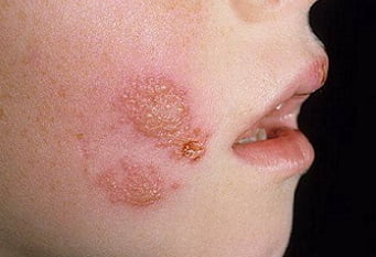 - Импетиго. Эта форма заболевания является достаточно распространенным. Его симптомы возникают внезапно с появления фликтен (водянистых, просовидных пузырьков), которые впоследствии преобразуются в желтоватые корочки и сильно чешутся. При слиянии корочек и стафилококковой инфекции корочки могут быть зеленоватого цвета. Последствия их разрешения бывают в виде шелушащихся пятен, плохо поддающихся загару. Наиболее часто поражается область лица и голова.