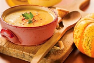 - Овощной крем-суп. Для приготовления этого блюда подготовьте продукты: картофель, морковь, репу, обезжиренное молоко, сливочное масло. Количество ингредиентов подбирайте по своему усмотрению. Все овощи отварите и измельчите блендером. Для разбавления массы до консистенции пюре используйте овощной отвар и молоко. Перед употреблением супа положите в тарелку небольшой кусочек сливочного масла.