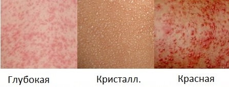 Данная потница у взрослых может доставлять более существенный дискомфорт, нежели кристаллическая. Она представляется в виде пузырькообразных высыпаний на кожном покрове красного цвета, которые часто сопровождаются воспалением в поверхностных слоях кожного покрова.