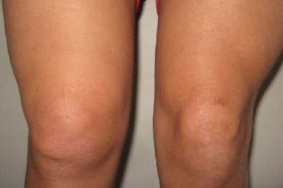 Главные симптомы заболевания асептического типа — это увеличение в объеме коленного соединения и отсутствие при этом болевого синдрома. Такое явление вызывается тем, что синовиальная жидкость, находящаяся в суставной сумке при раздражении синовиальной оболочки, резко увеличивается в количестве буквально за несколько часов. Возникшая отечность в области коленного сустава препятствует свободному движению.