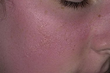 Кожа становится очень пигментированной, постоянно имеет оттенок спелого помидора. Также становится грубой, покрывается рубцами, некоторые процессы уже необратимы. Не лечение проблемы усугубляет ситуацию ещё больше.