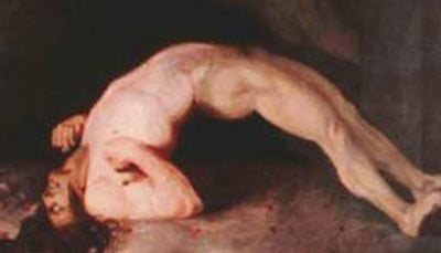 - Период разгара болезни продолжается в среднем 8—12 дней, в тяжёлых случаях до 2—3 недель. Его длительность зависит от своевременности обращения к врачу, ранних сроков начала лечения, наличия прививок в период, предшествующий заболеванию. Развивается тоническое сокращение жевательных мышц (тризм) и судороги мимических мышц, вследствие чего у больного появляется сардоническая улыбка лат. risus sardonicus: брови подняты, рот растянут в ширину, углы его опущены, лицо выражает одновременно улыбку и плач. Далее развивается клиническая картина с вовлечением мускулатуры спины и конечностей («опистотонус»). Возникает затруднение глотания из-за спазма мышц глотки и болезненная ригидность (напряжение) мышц затылка. Ригидность распространяется в нисходящем порядке, захватывая мышцы шеи, спины, живота и конечностей. Появляется напряжение мышц конечностей, живота, который становится твёрдым как доска. Иногда наступает полная скованность туловища и конечностей, за исключением кистей и стоп. Возникают болезненные судороги, вначале ограниченные, а затем распространяющиеся на большие группы мышц, которые длятся от нескольких секунд до нескольких минут. В лёгких случаях судороги возникают несколько раз в сутки, в тяжелых — длятся почти непрерывно. Судороги могут возникать спонтанно, а могут появляться вследствие действия раздражителя, которым может стать яркий свет, прикосновение или звук. При возникновении судорог у человека наблюдается усиленное потоотделение, лицо синеет и вся мимика отражает ужасное страдание. Спазмирование мышц приводит к нарушению функций глотания, дыхания, мочеиспускания. В организме происходят застойные явления, нарушения обмена веществ, что отражается неблагоприятным образом на сердечной деятельности. Температура тела поднимается выше 40 градусов.