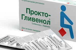 Это лекарственное средство содержат в своем составе лидокаин и трибендид. Лидокаин оказывает местное обезболивающее действие на зону анального отверстия, а трибендид снижает проницаемость капилляров, улучшает микроциркуляцию мышечного и слизистого слоя прямой кишки, а также имеет эффективное противовоспалительное действие. Улучшение состояния и значительное уменьшение болевого синдрома происходит через 1,5-2 часа после введения суппозитория «Прокто-Гливенола» в прямую кишку. Также значительно уменьшается отек и воспалительный процесс слизистой.