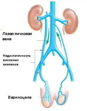 - врожденное отсутствие или недостаточность клапанного аппарата яичковой вены, что ведет к физической невозможности направлять венозный кровоток вверх;