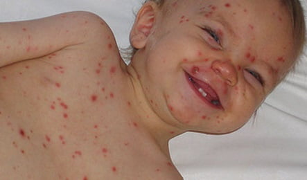У ребенка поднялась температура и появились прыщики по всему телу и в волосах. Это ветряная оспа?