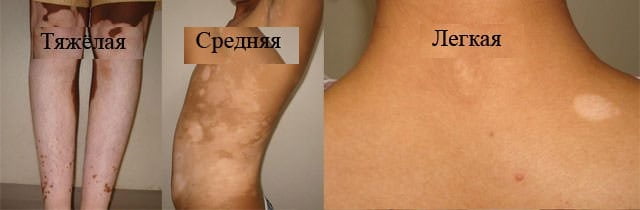 - универсальная форма (встречается реже всего): практически полная потеря пигмента (более 80% площади тела).